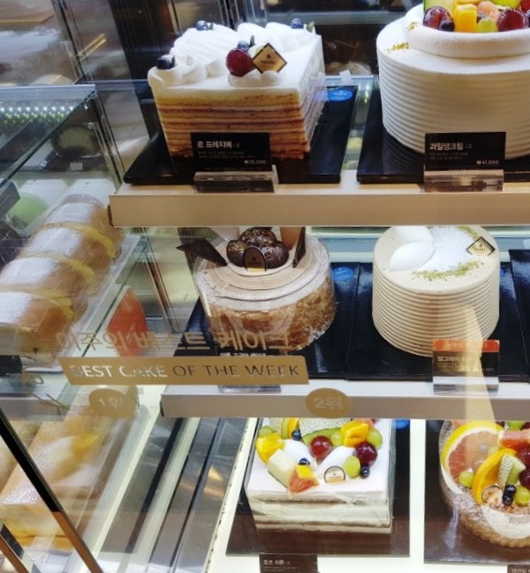 노아베이커리의 Best1 케이크, 시그니처 메뉴는 얼그레이 쉬폰인데 제가 방문했던 주말, 금주의 베스트셀러에는 2위였습니다.